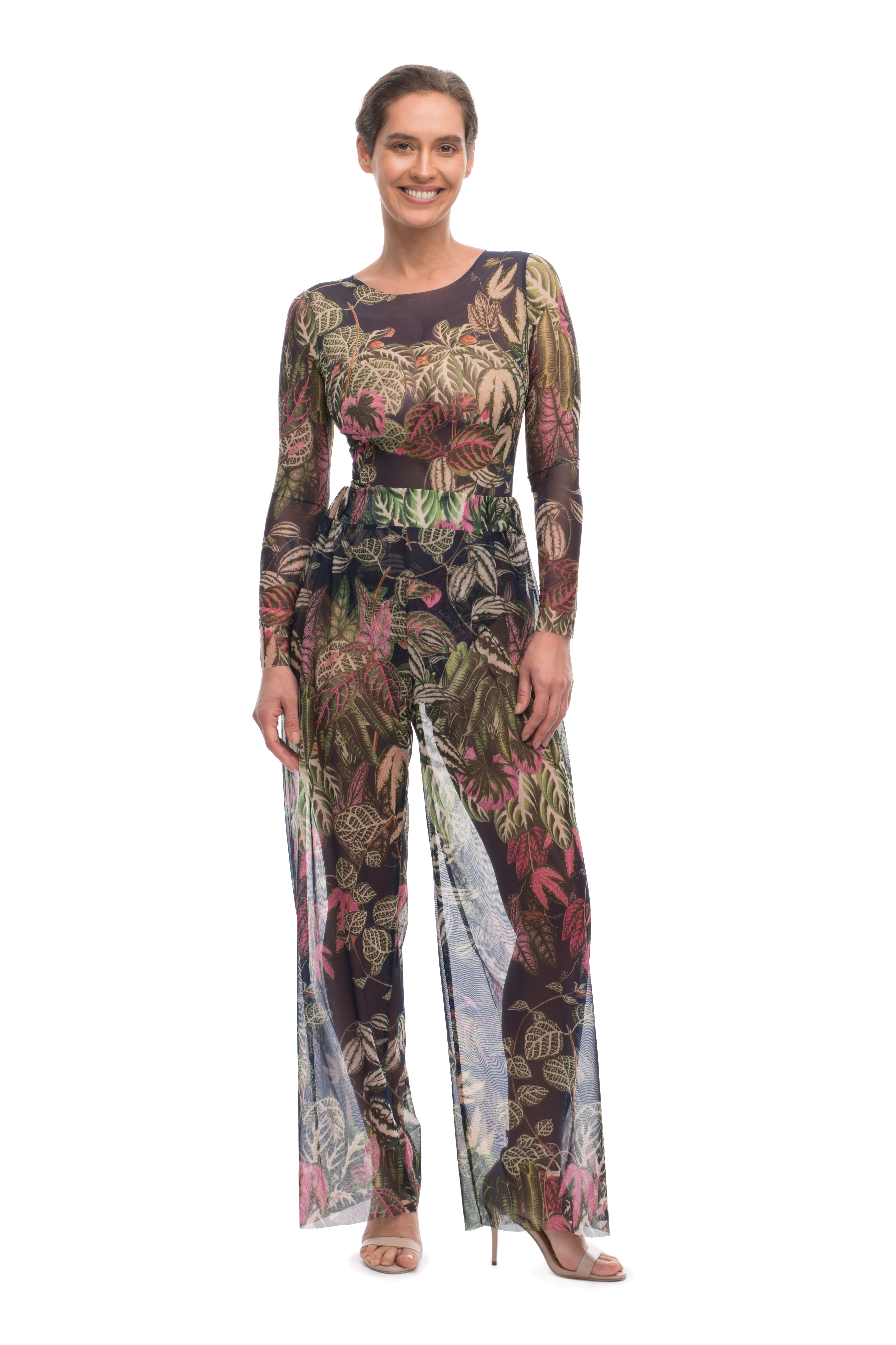 同じシリーズのパンツと合わせることが出来ます。ボディースーツのようにお洋服としてもお使い頂るアイテムです。ほかにも無地ロングスカート、ジャケット、ショートパンツ とのコーデをお楽しみいただけます。